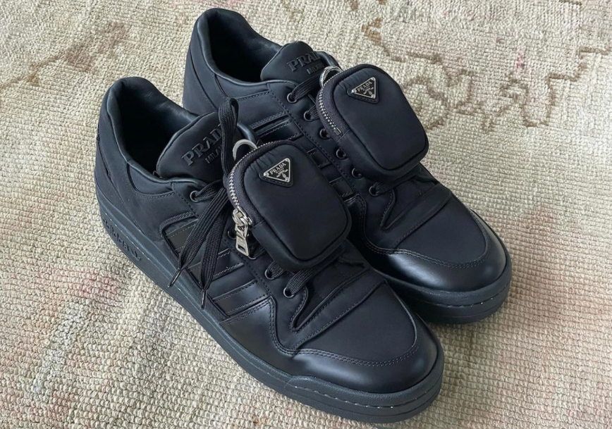 PRADA x Adidas Originals Unisex Forum Low Re-Nylon Sneakers Black 2EG390_3LJX_F0557