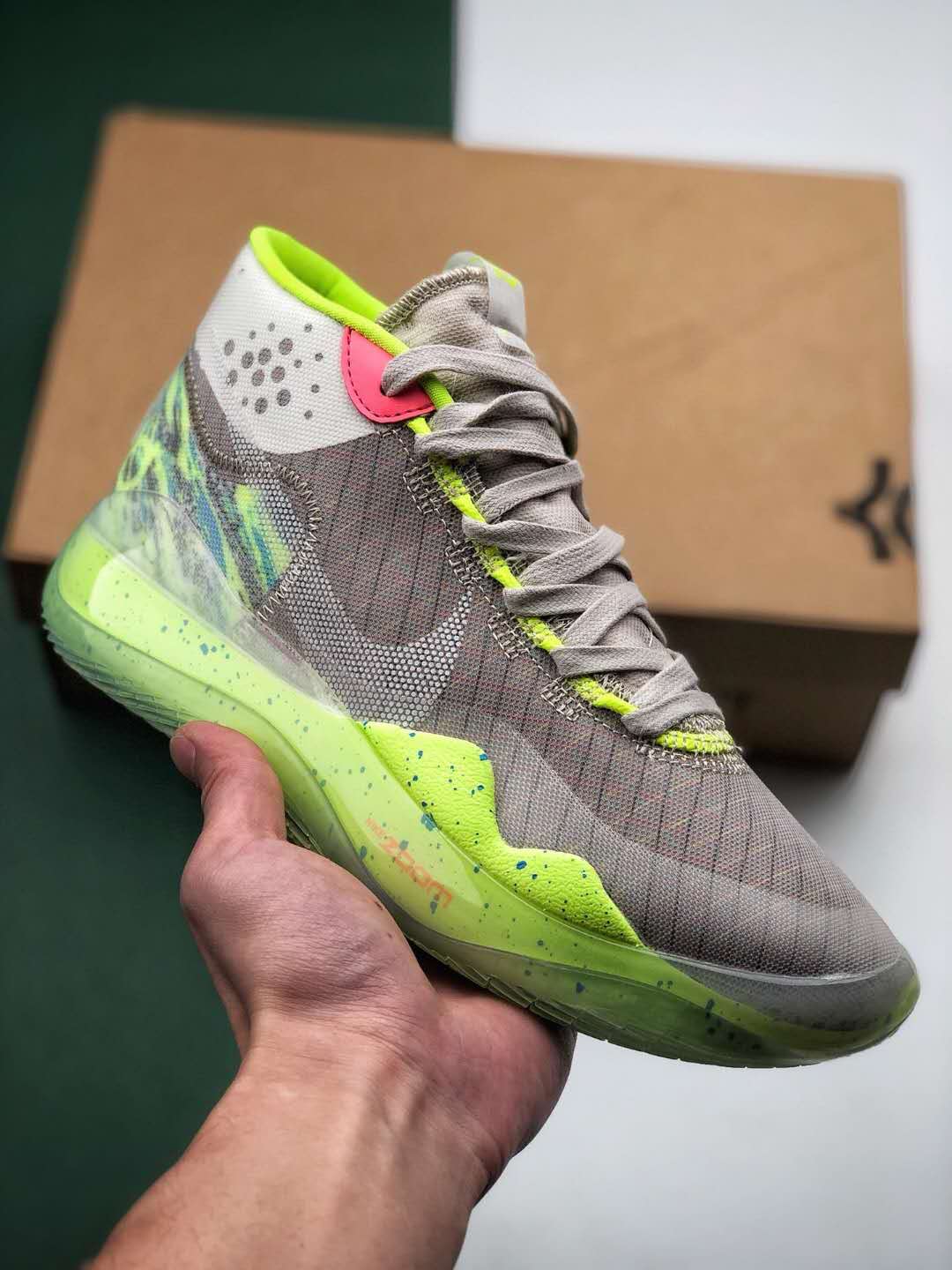 Nike Zoom KD 12 EP Grey Black Green Basketball Shoes AR4230-109
