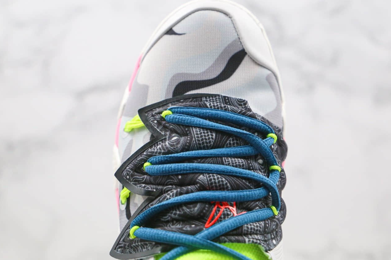 Introducing the remarkable Nike Kybrid S2 EP Grey Camo Blue Pink Volt, a sensational addition to the Kyrie Irving signature line. Combining cutting-edge design with phenomenal performance, these basketball shoes are a statement of style and functionality. Designed to embrace the essence of Kyrie Irving’s game, these sneakers will elevate your performance on the court while turning heads off it.