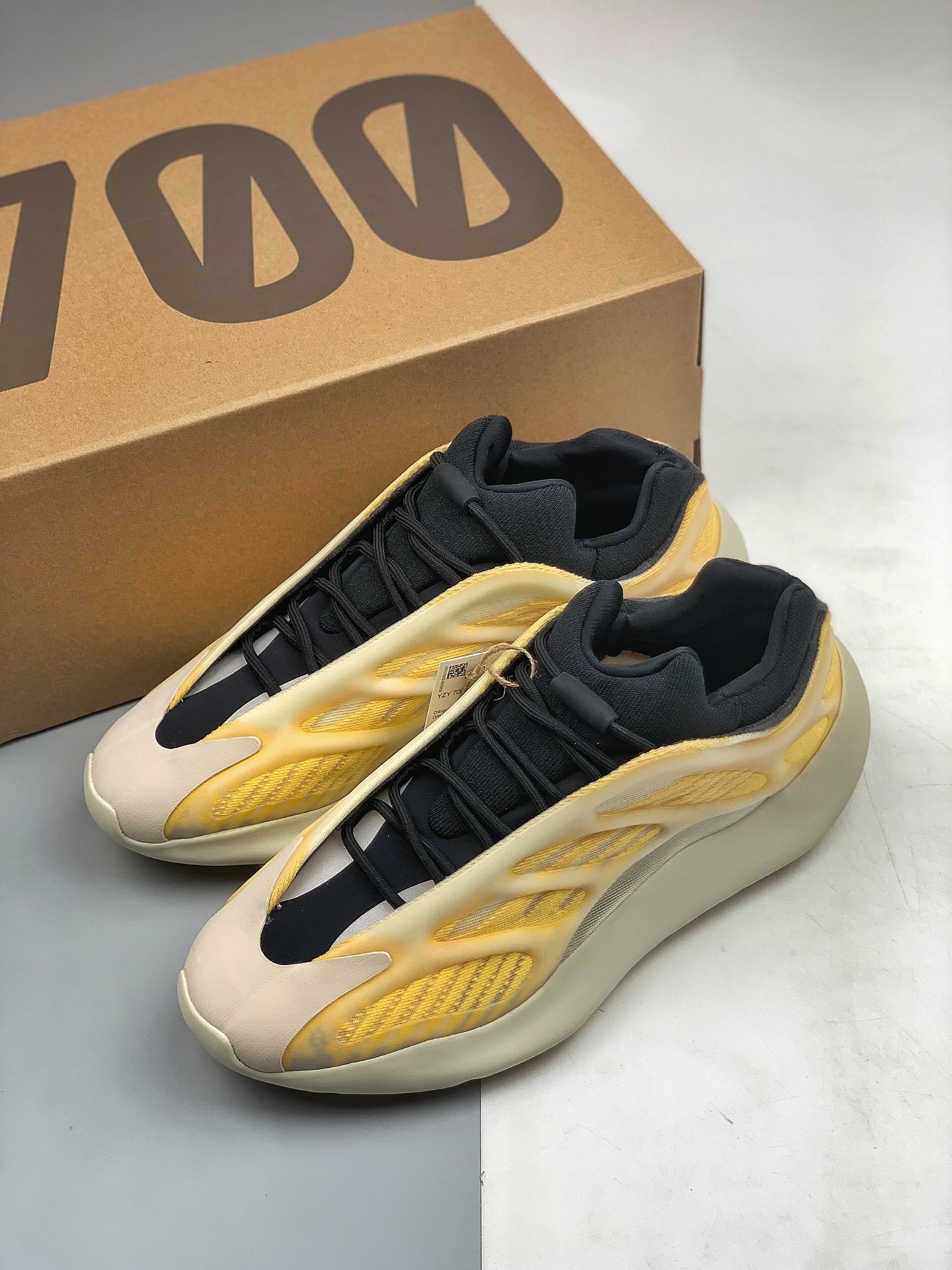 1. Modern and Stylish Design: The Adidas Yeezy 700 v3 Mono Safflower HP5425 showcases a modern and sleek design that effortlessly blends with any outfit. The safflower yellow color stands out, giving the shoe a unique and eye-catching appeal.