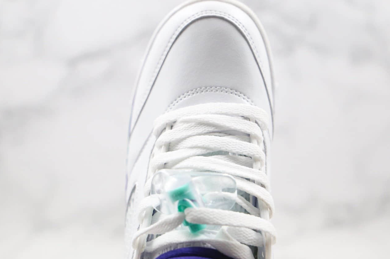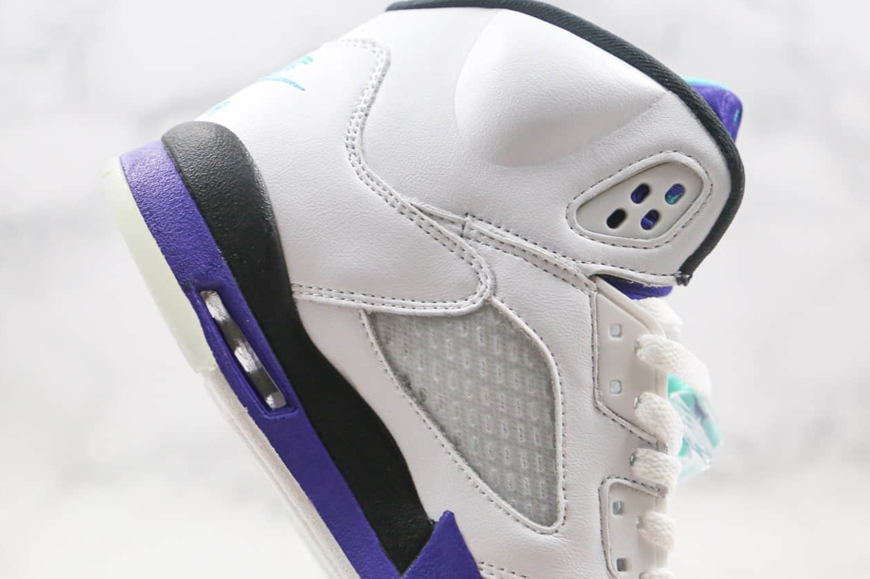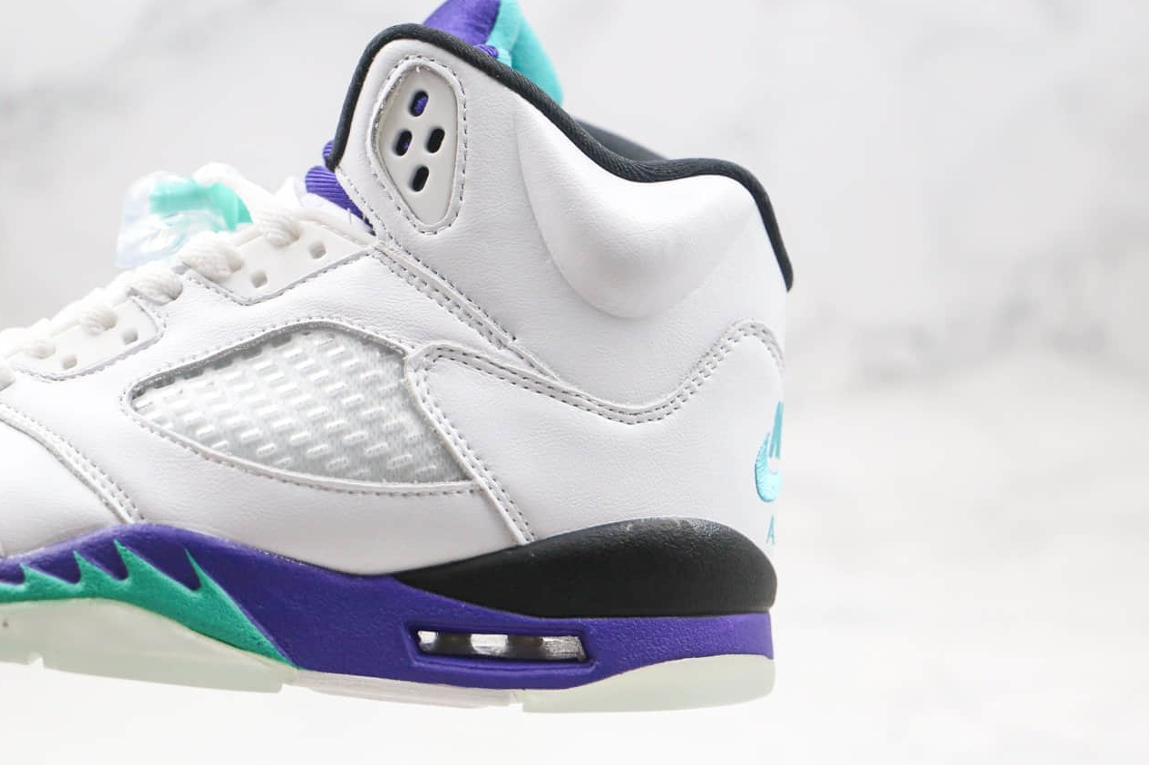 1. Premium Materials: Crafted with the utmost care, these Air Jordans are made from high-quality materials that ensure durability and comfort. The upper is predominantly white leather with hits of vibrant colors like grape ice, purple, and lime green, reminiscent of the show’s vibrant aesthetics.