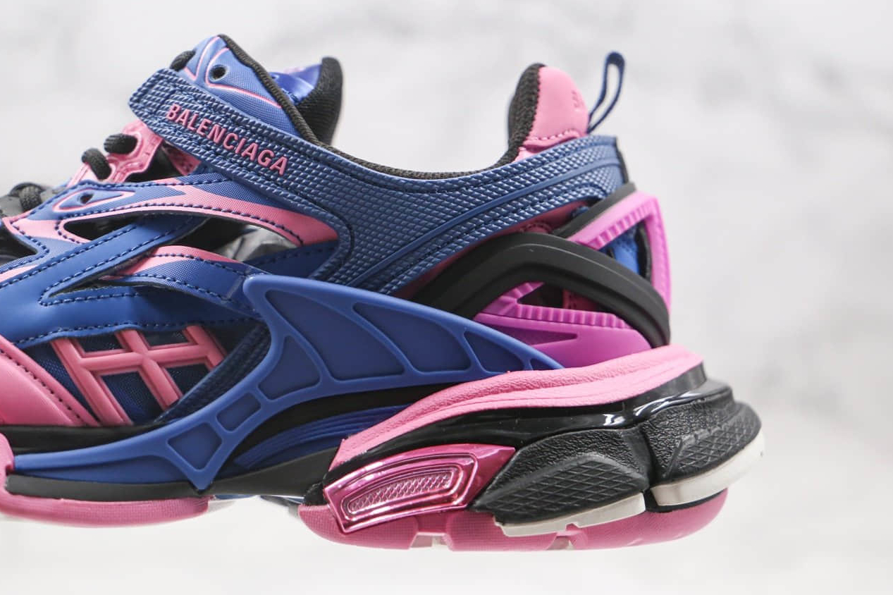 The Balenciaga Track.2 Trainer ‘Blue Pink’ is available in women’s sizing, making it an ideal choice for fashion-forward ladies. The trainers offer a generous fit, allowing for ample toe room and added comfort during long wear. With a drop of 9.5mm, the trainers provide excellent support for everyday activities. The rubber outsole delivers superior traction, ensuring stability on various surfaces. These trainers are a true testament to Balenciaga’s commitment to innovation and craftsmanship.