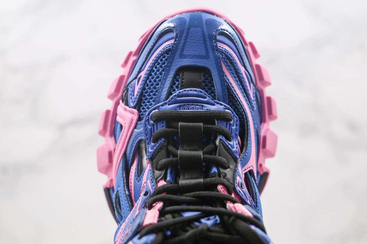 The Balenciaga Track.2 Trainer ‘Blue Pink’ boasts several key features that make them a must-have for sneaker enthusiasts. Firstly, the upper is constructed with a mix of mesh, leather, and rubber overlays, ensuring durability and breathability. The triple-stacked sole features a chunky design, providing utmost comfort and stability. The trainers are equipped with a lace-up fastening system, allowing for a customizable and secure fit. Balenciaga branding is tastefully incorporated throughout, manifesting the true essence of luxury.