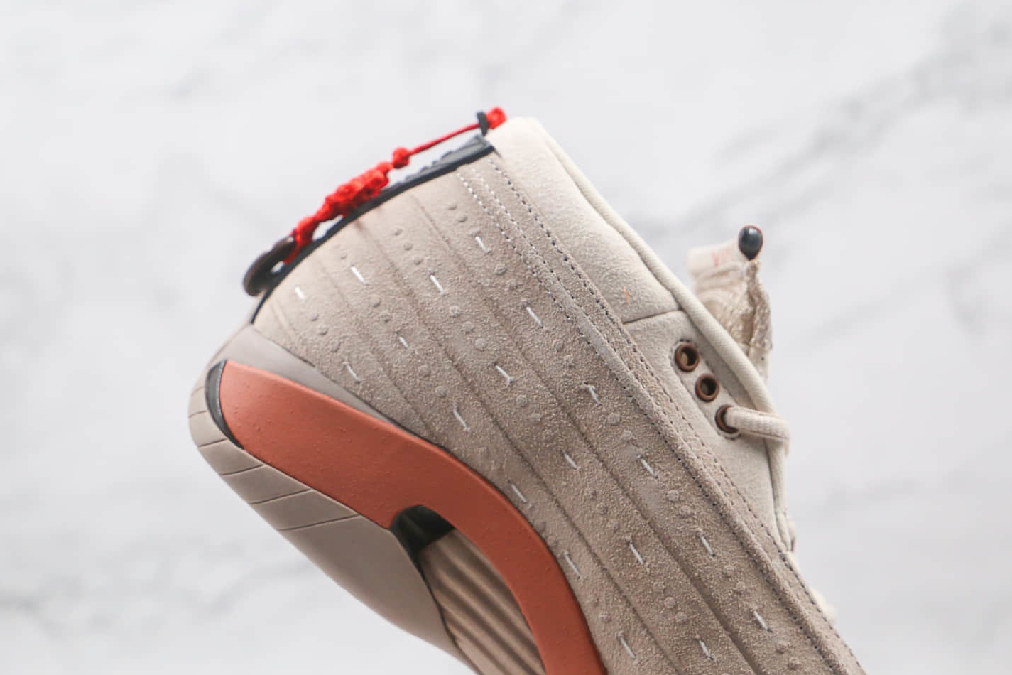 The CLOT x Air Jordan 14 Retro Low ‘Terracotta’ features: