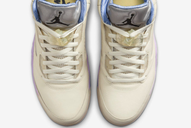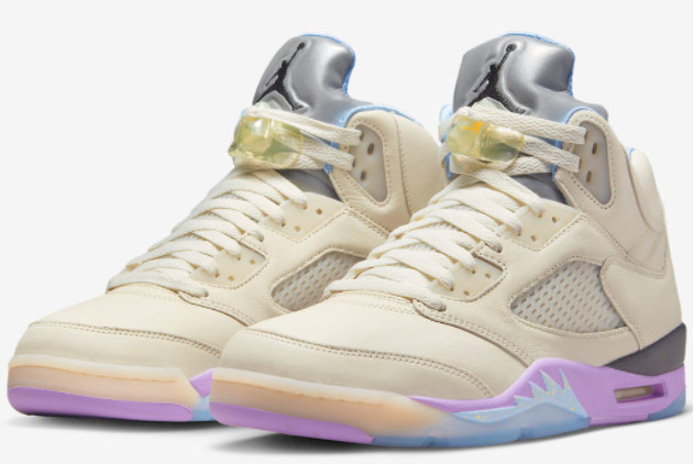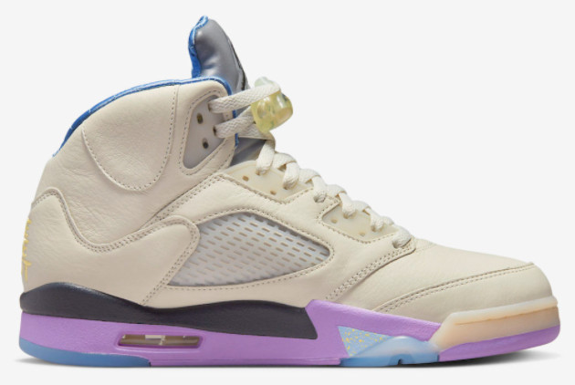 3. Unique Colorway: The Sail/Washed Yellow-Violet Star colorway sets this Air Jordan 5 apart from the rest. The combination of muted sail tones with vibrant pops of yellow and violet adds a bold and dynamic aesthetic to the sneaker.