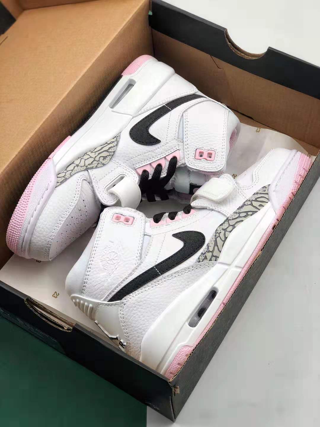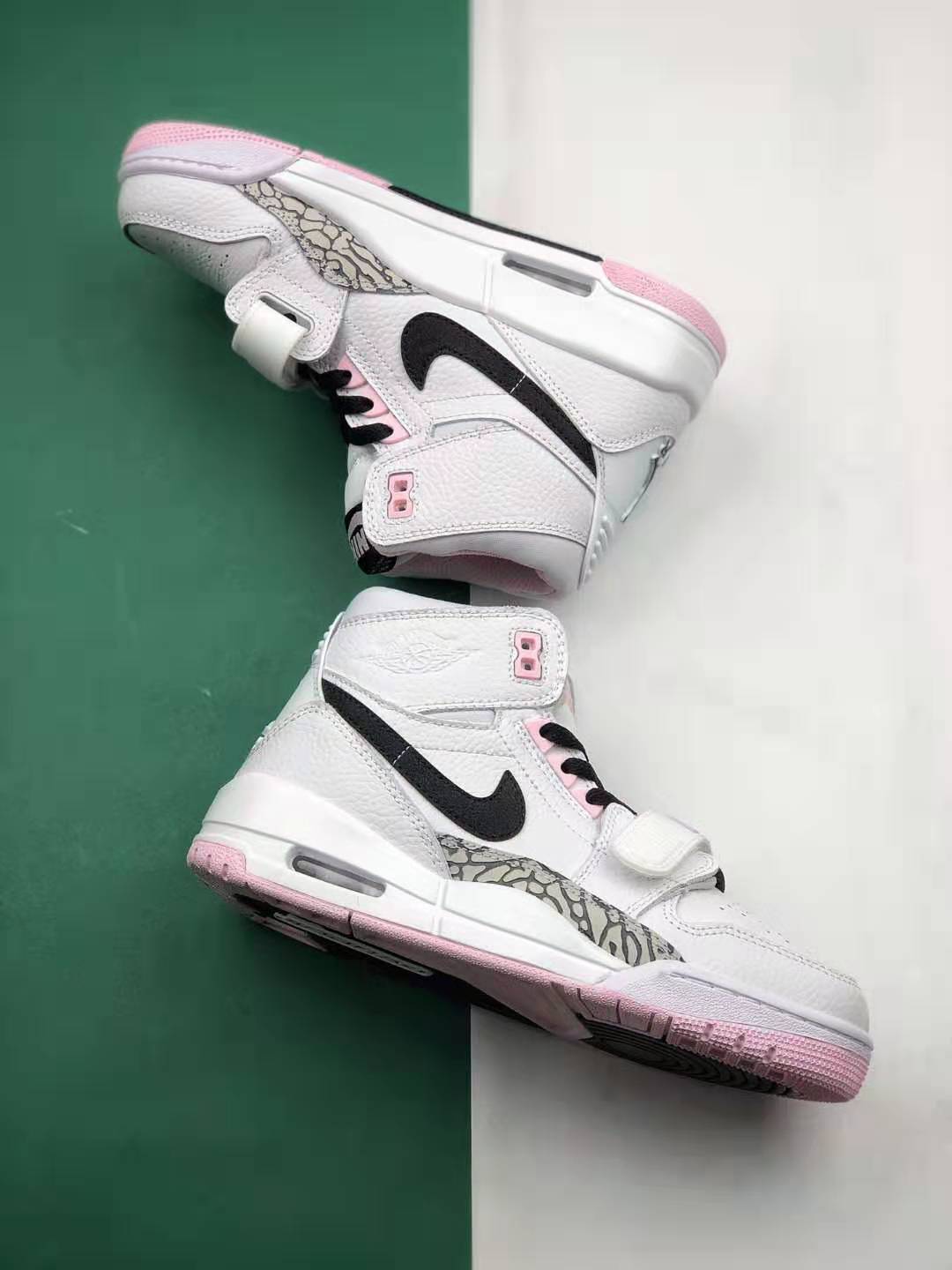 Introducing the Jordan Legacy 312 ‘White Black Pink Foam’ AT4040-106, the perfect blend of iconic Jordan sneakers. Created by legendary designer Don C, this sneaker pays homage to the Air Jordan 1, Air Jordan 3, and Nike Air Alpha Force Low, resulting in a unique silhouette that will turn heads wherever you go. With its striking color combination of white, black, and pink foam, this sneaker is sure to add a touch of style and individuality to any outfit.