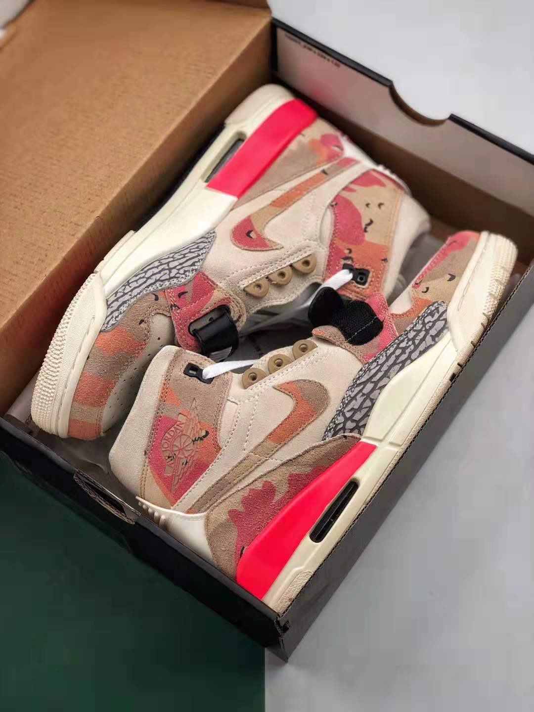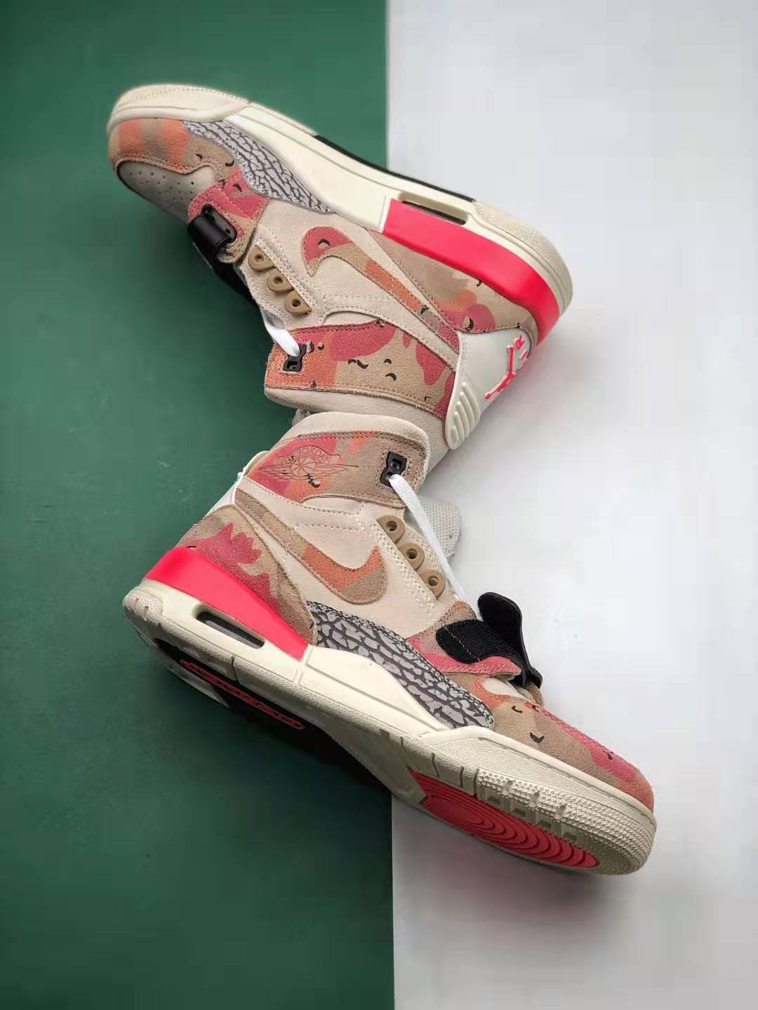 2. Premium Construction: These sneakers are built to last. Crafted from a combination of leather, textile, and synthetic materials, the Jordan Legacy 312 ‘Desert Camo’ AV3922-126 offers durability and flexibility. The upper features a desert camo pattern, enhancing its visual appeal.