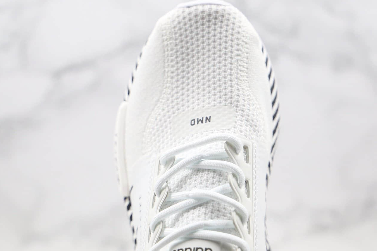 1. Eye-Catching Dazzle Design: Stand out from the crowd with the unique “Dazzle” pattern on these Adidas NMD_R1 V2 shoes. This distinctive print showcases a mesmerizing blend of cloud white colors, creating a visually captivating effect that demands attention.