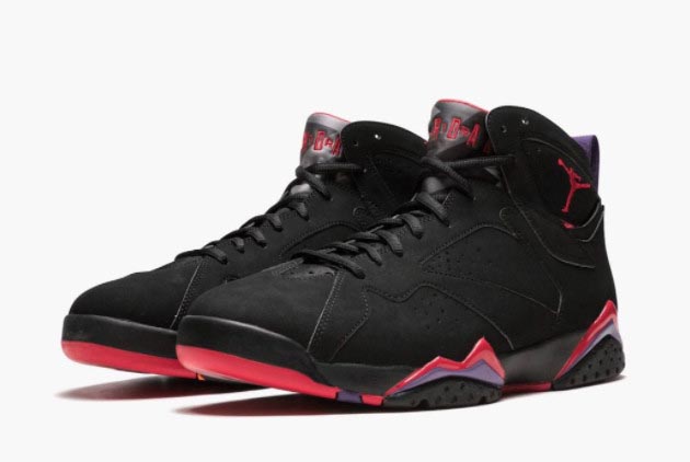 1. Bold Design: The ‘Raptors’ edition of the Air Jordan 7 features a striking combination of black, true red, dark charcoal, and club purple accents. The color scheme pays homage to the team’s vibrant jerseys from the early 90s, making these kicks a standout on and off the court.