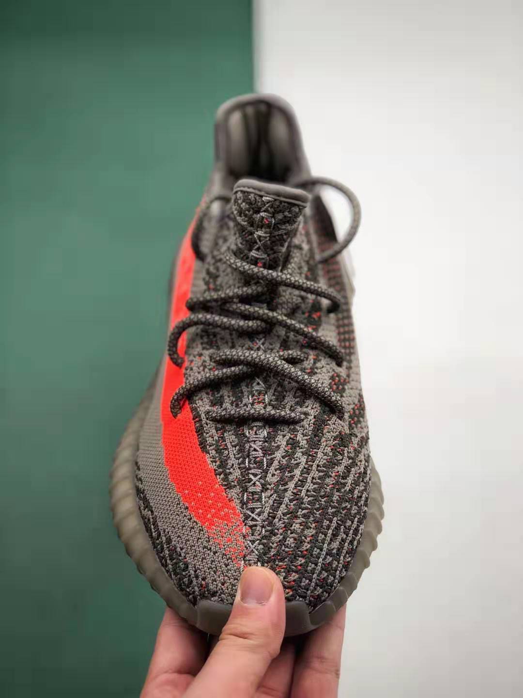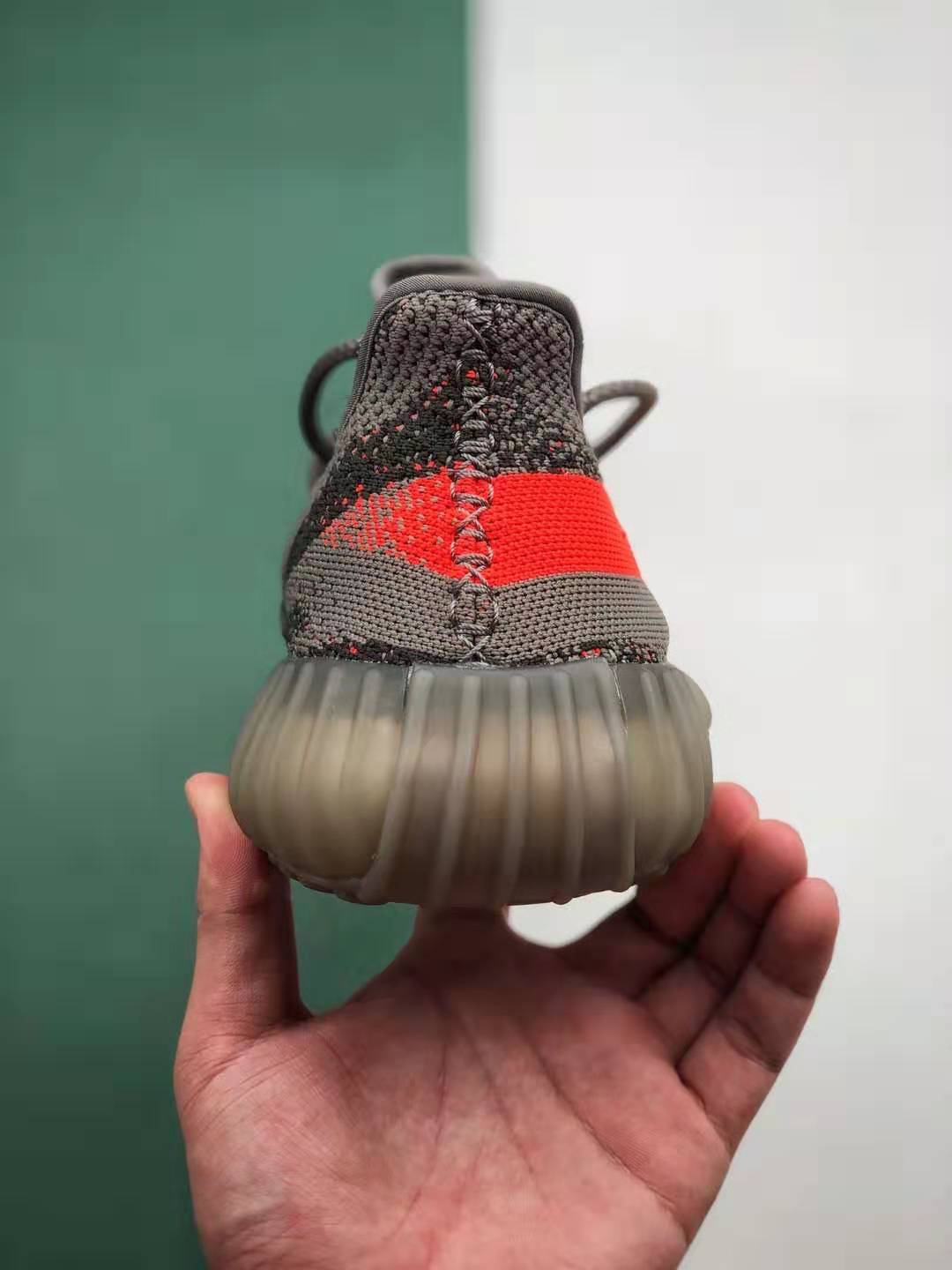 3. Distinctive Design: The ‘Beluga’ colorway of the Adidas Yeezy Boost 350 V2 showcases a striking combination of grey and solar red hues. The vibrant splash of red on the SPLY-350 ribbon and orange accents on the heel tab add a unique touch to the overall design. This distinctive aesthetic has made the ‘Beluga’ a standout piece within the Yeezy collection.