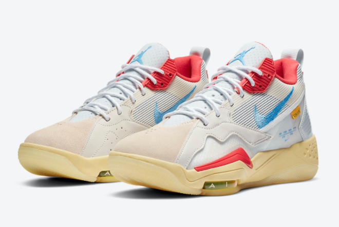 The Union x Jordan Zoom 92 ‘Guava Ice’ DA2553-800 stands out with its exquisite color combination of guava ice, blue fury, and light bone. The upper is made from a combination of suede, mesh, and synthetic materials, providing durability and breathability. The shoe also showcases the signature Union branding on the tongue, adding a touch of exclusivity.