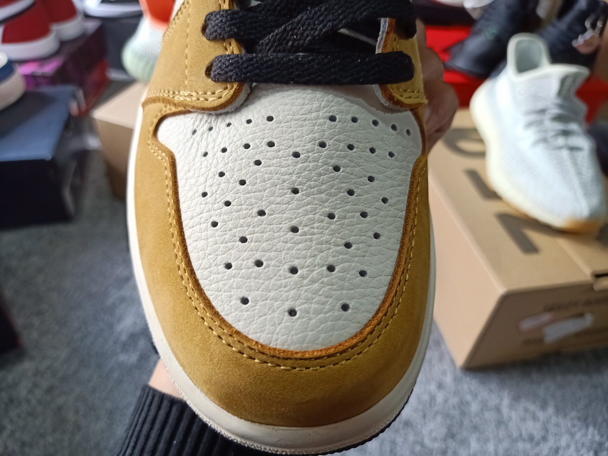 2. Unique Colorway: The golden harvest hue dominates the upper, giving the shoe a luxurious feel. The black accents and white midsole perfectly complement the overall design, adding depth and contrast to the silhouette.