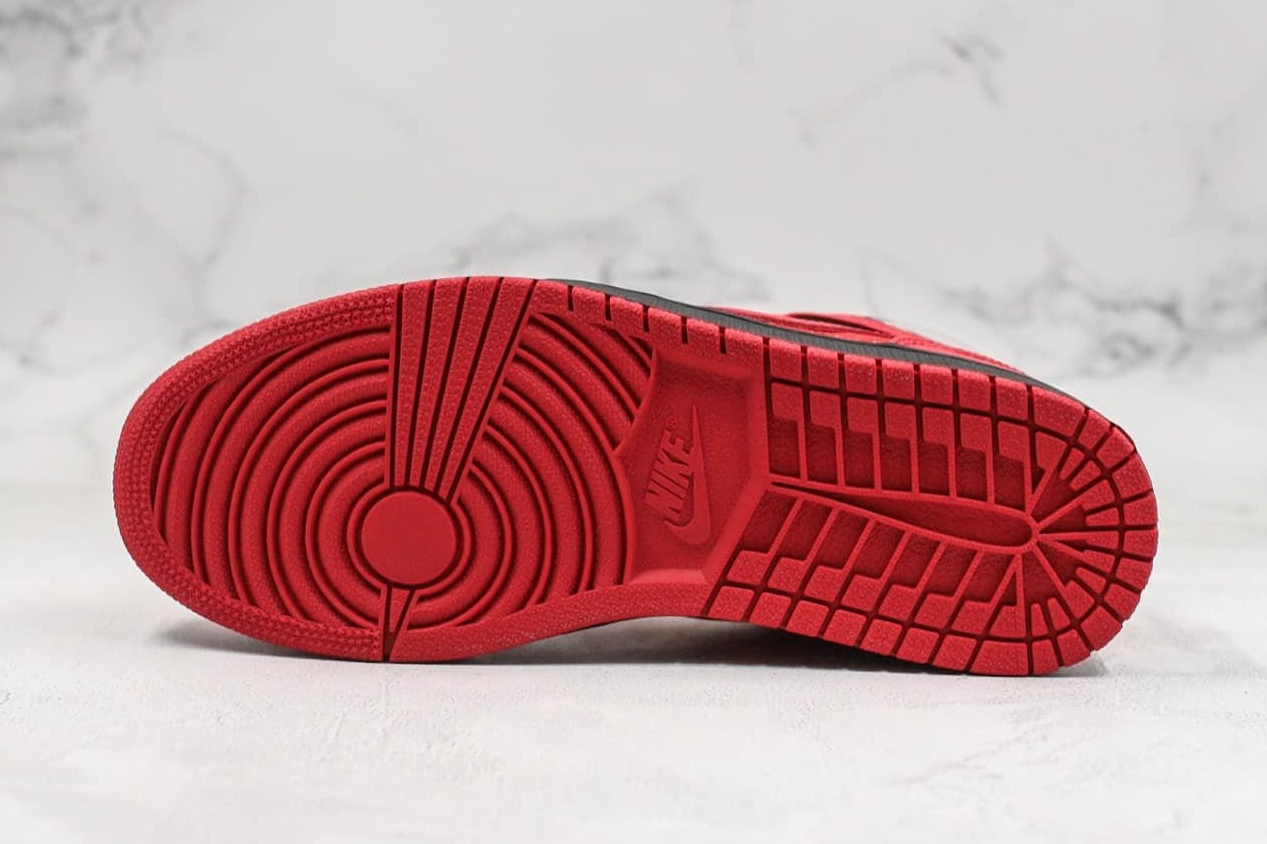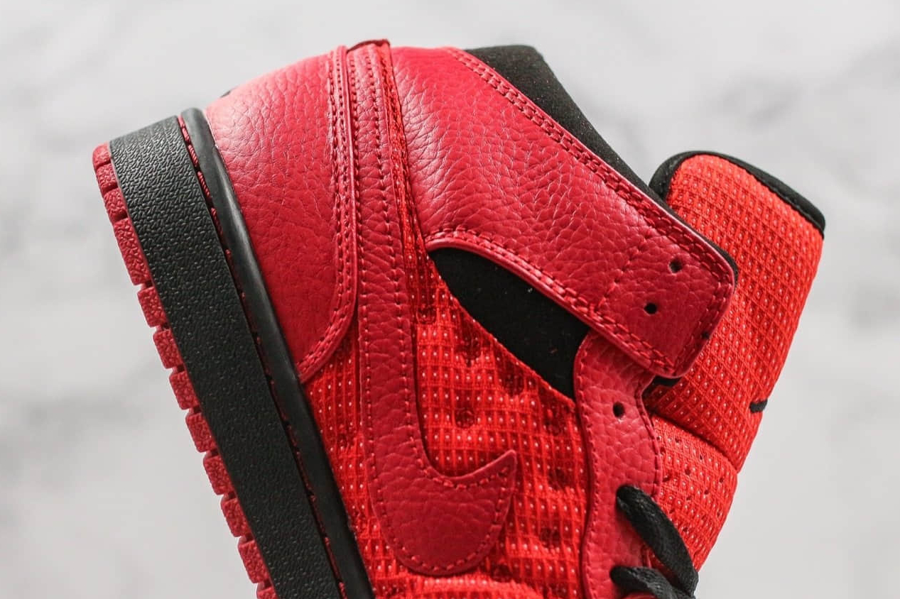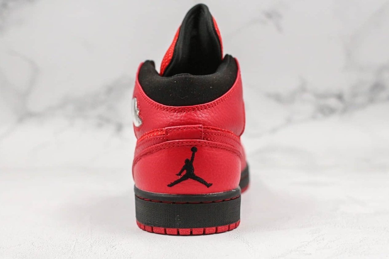 1. Sleek Design: The Air Jordan 1 Retro Mid Black Gym Red features a timeless design with its black and gym red colorway, making it a versatile choice for any outfit.