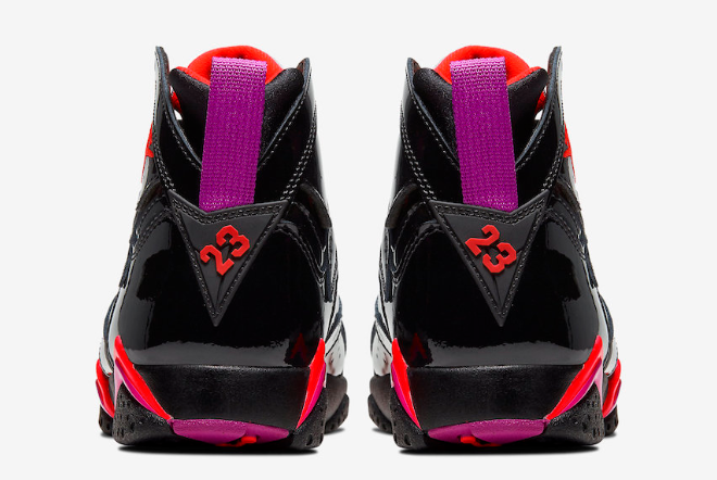 These sneakers also feature the iconic Air Jordan branding, with the Jumpman logo prominently displayed on the tongue and heel. The shoe’s outsole utilizes a multidirectional traction pattern, offering excellent grip and stability on various surfaces. Additionally, the Air Jordan 7 ‘Black Patent Leather’ includes a visible Air-Sole unit in the heel, providing superior cushioning and impact absorption for a comfortable stride.