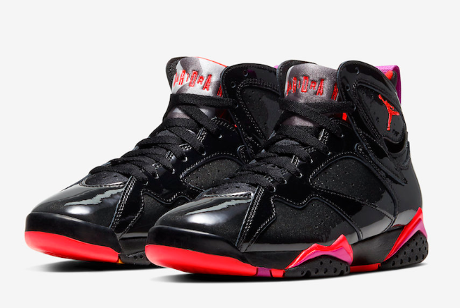 The Air Jordan 7 ‘Black Patent Leather’ is available in both men’s and women’s sizes. The upper is constructed with a combination of patent leather and durabuck, ensuring long-lasting wear. The sneakers are designed with a lace-up closure system, allowing for customizable fit and lockdown.