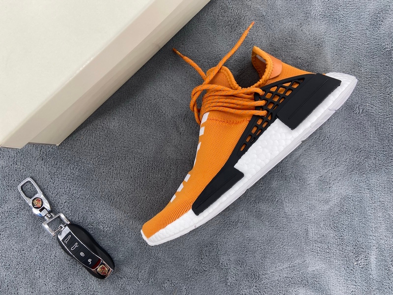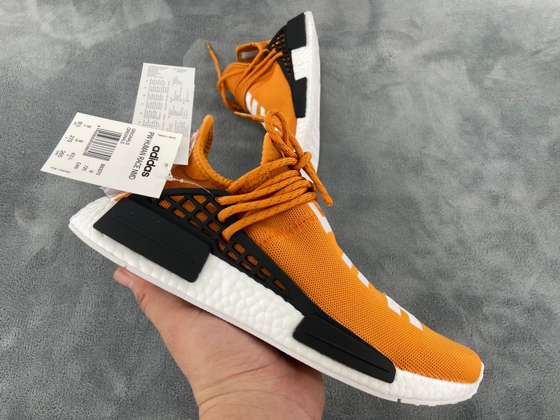 1. Unique Design: The Adidas Pharrell X NMD Human Race ‘Orange’ BB3070 showcases a striking orange color scheme that demands attention. This vibrant hue is sure to make a bold statement wherever you go.