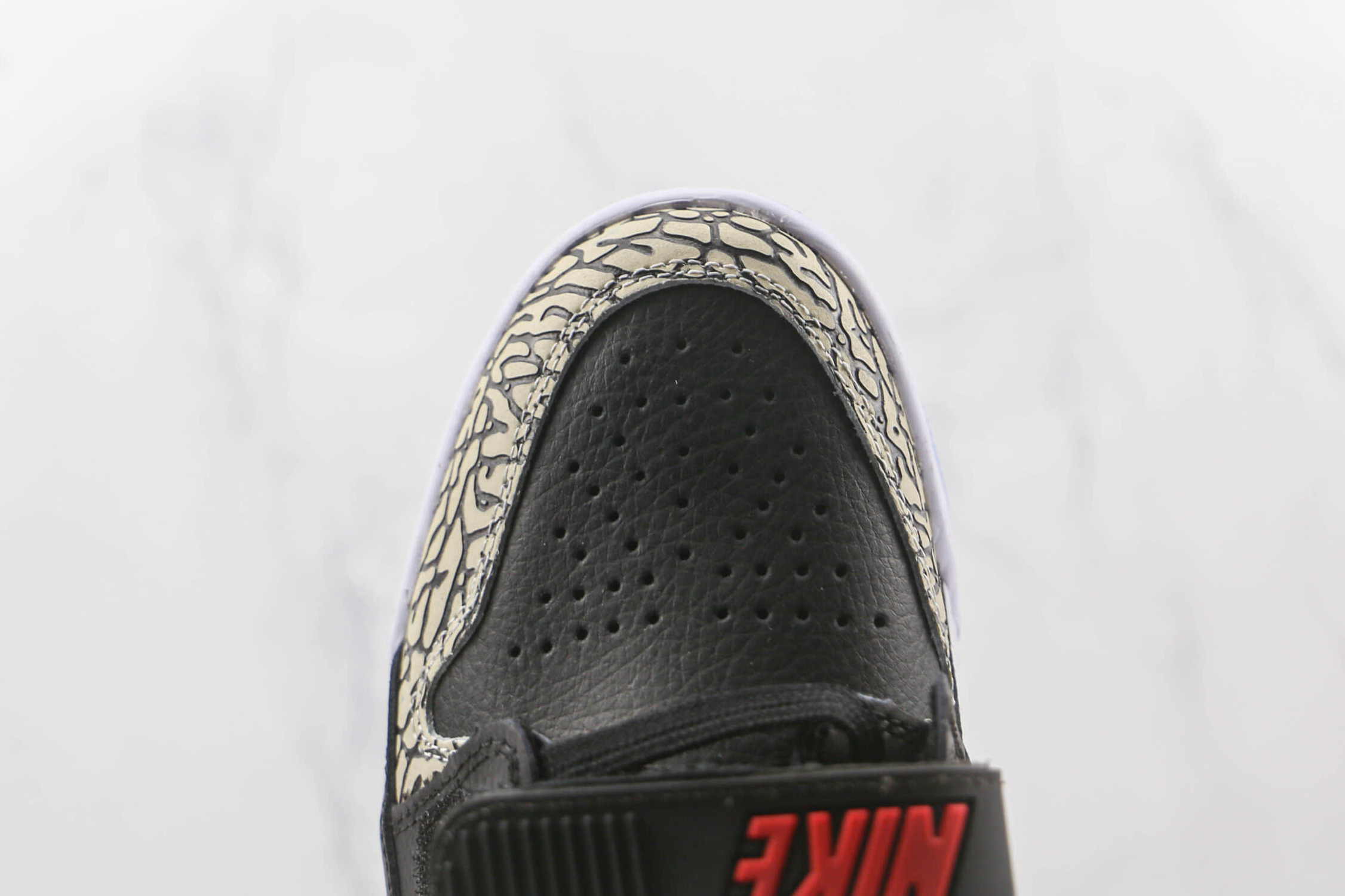 9. Signature Details: Classic Jordan branding and iconic elephant print overlays on the heel