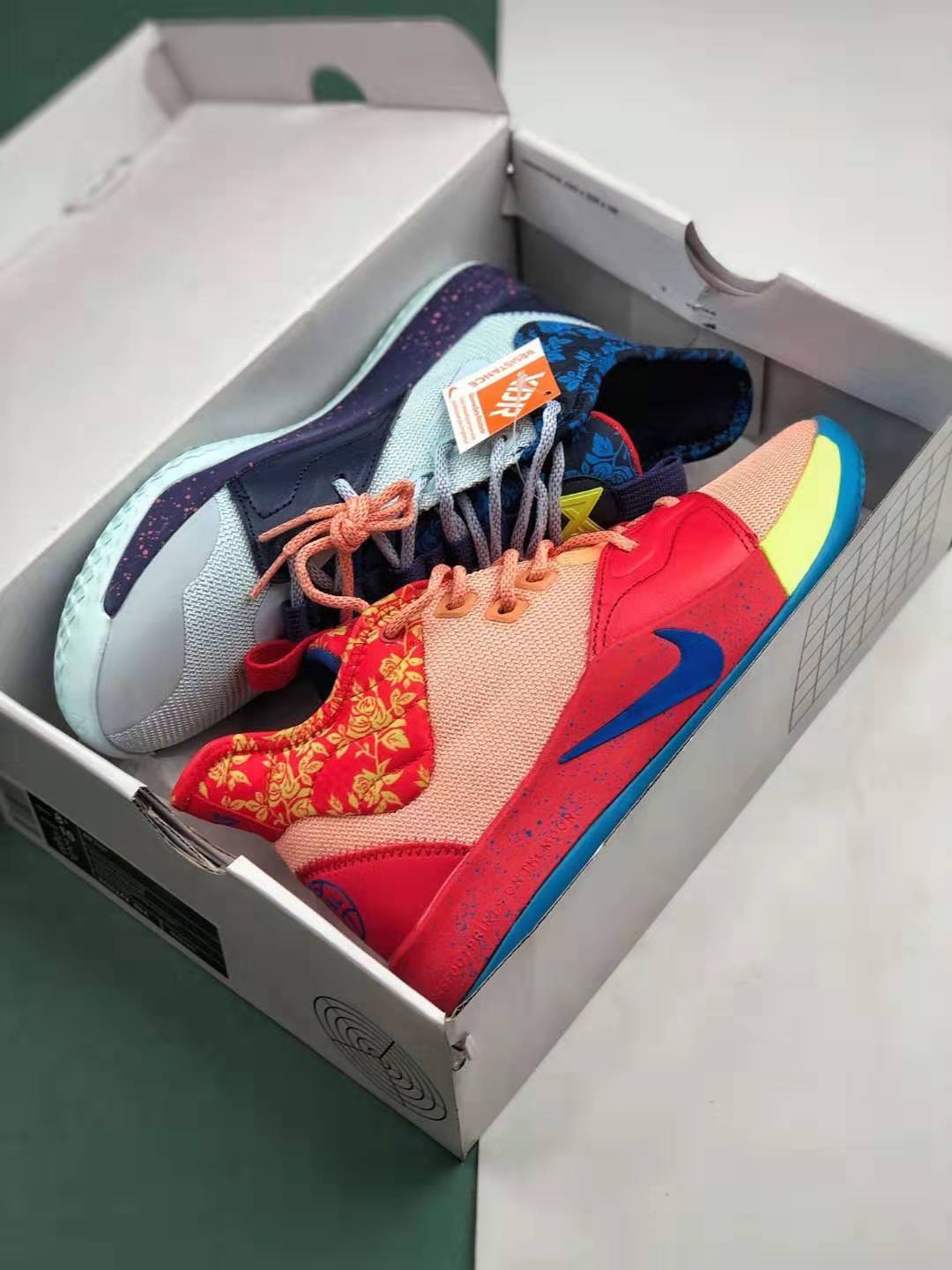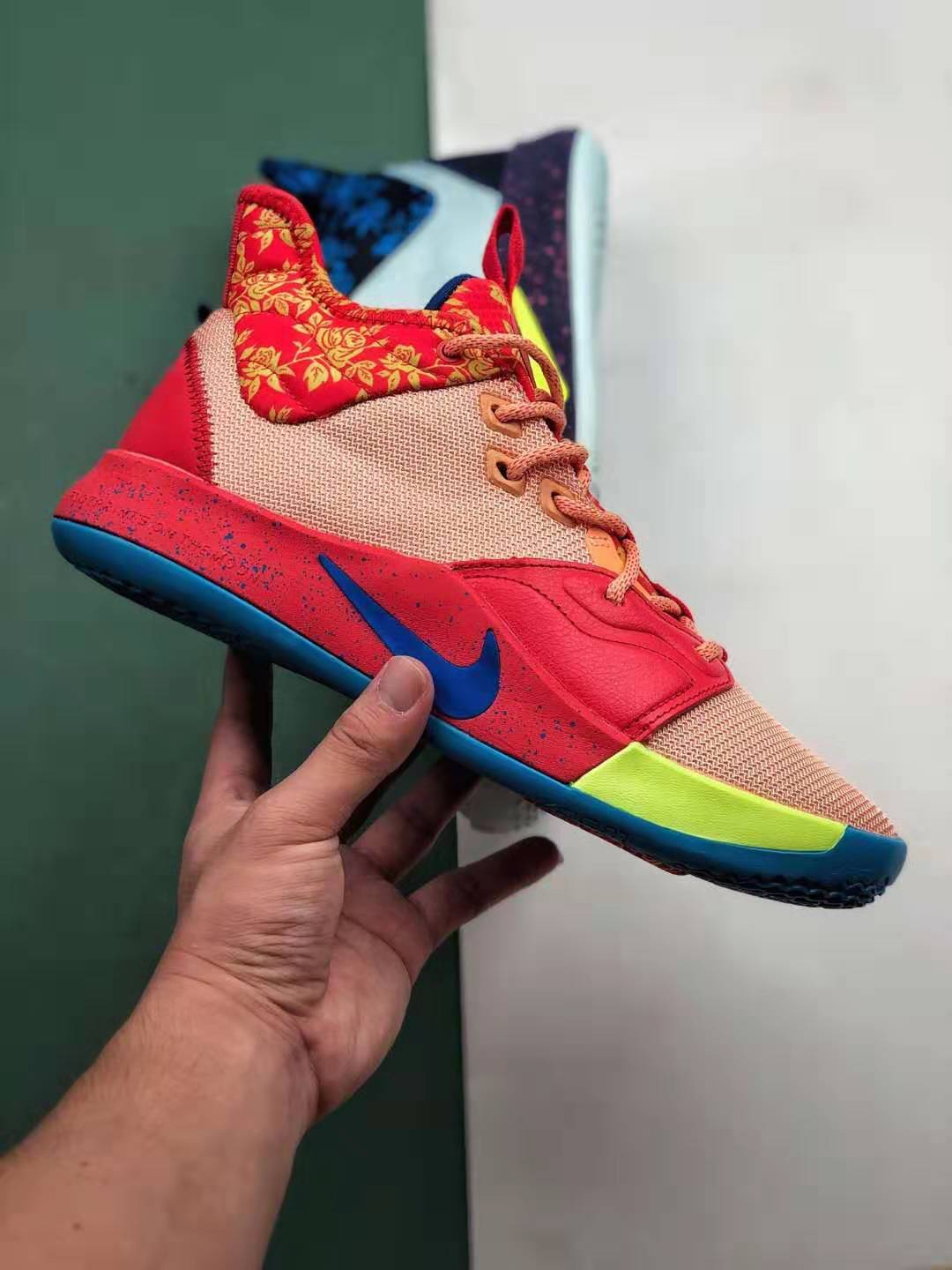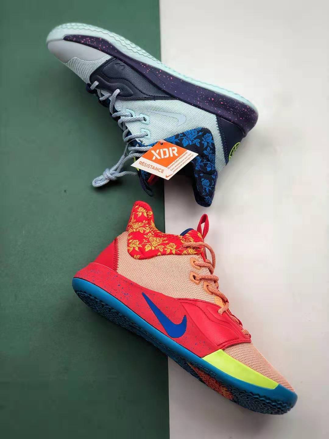 The Nike PG 3 NASA EP Mandarin Duck EYBL Blue Red Paul George Basketball Shoes BQ6242-064 are a stunning addition to Nike’s collaboration with NBA superstar Paul George and the National Aeronautics and Space Administration (NASA). Designed with both style and performance in mind, these basketball shoes are perfect for any basketball enthusiast or avid sneaker collector.